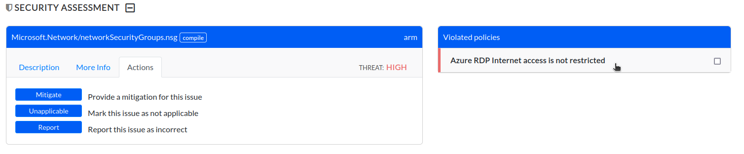 In the security assessment section find the desired vulnerability, open the Actions tab and click one of the options: