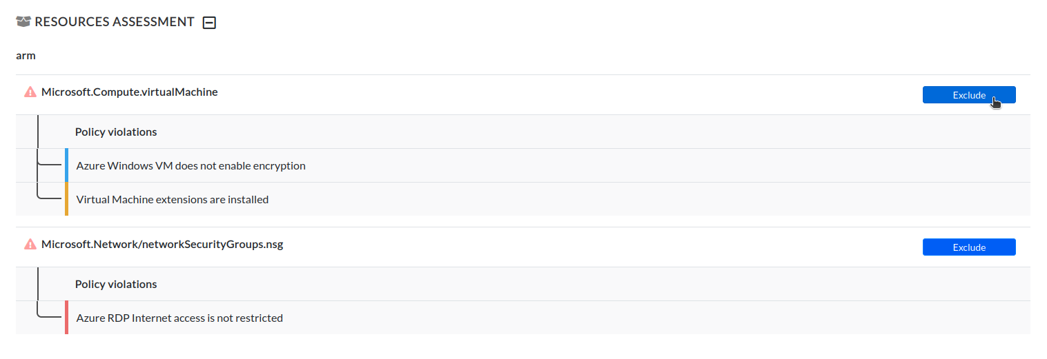 * **Or by excluding all the policies affecting a specific resource from the Resources Assessment section**