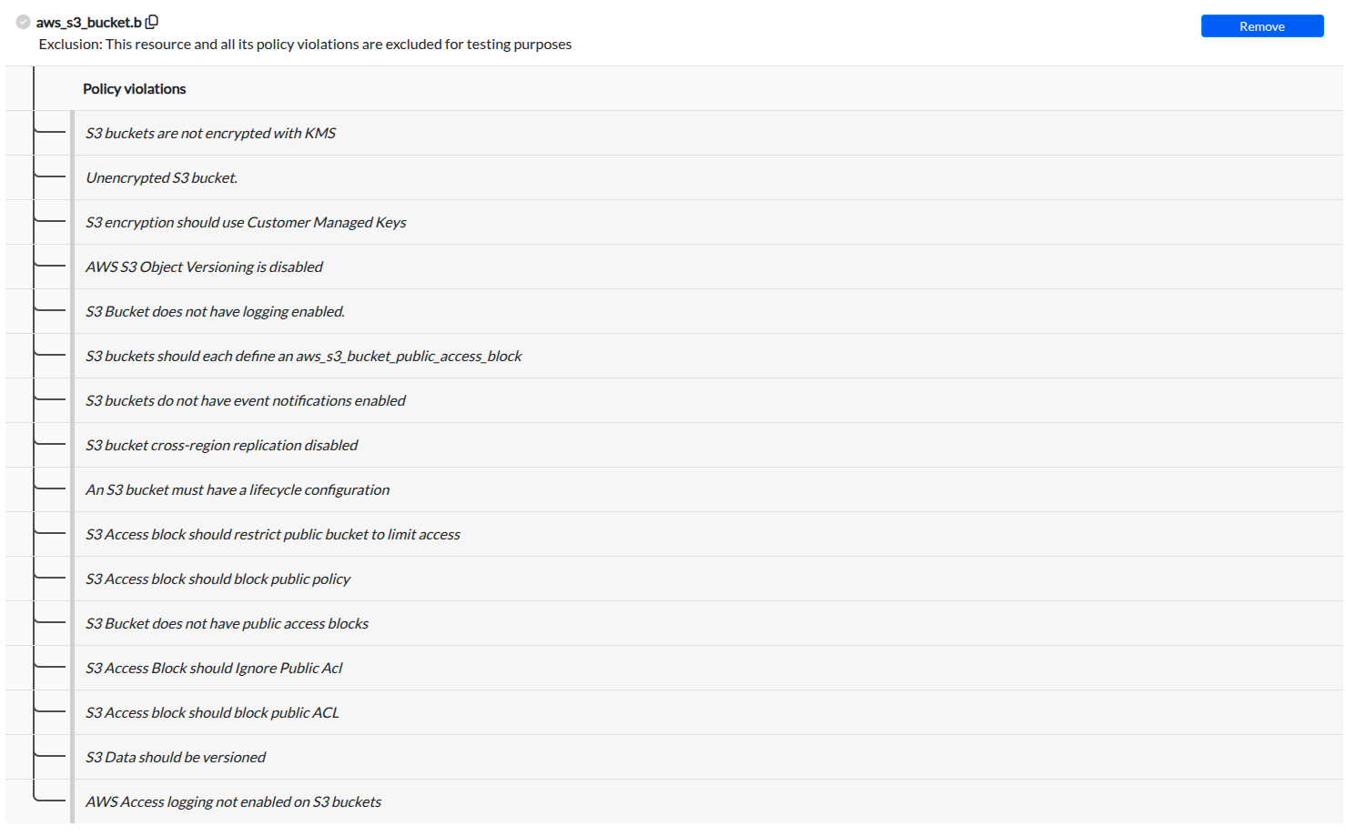 1. Locate the excluded resource in your scan results.